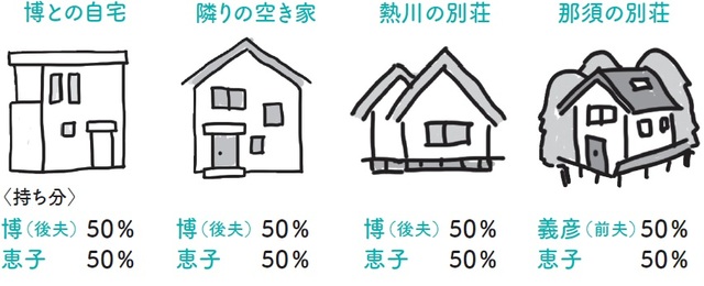 博:お恥ずかしいのですが……。もう1軒あるんです。我々の時代は、「不動産さえ持っていたら将来安泰だから」と言われておりまして。妻は不動産購入が好きでした。15年ほど前に自宅の隣りが空き家になったので、娘が結婚したら住んでもらおうと思って購入しました。私も親の相続でお金が入ったので、その家も共有名義で購入したのです。その時は感覚が麻痺していたのか、「不動産を買ったら妻と共有名義」と思っていました。結局、娘は夫の仕事の関係で九州に住んでいますから、今は物置のような状態ですが。