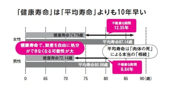 確かに、厳密には「健康寿命」は即「法的な死」ではありません。しかし、本人が意思表明できないと、財産的にはほぼ同じで、財産凍結されてしまいます。