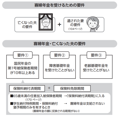 寡婦年金を受けるための、亡くなった夫の要件は三つあり、そのすべてを満たす必要があります。