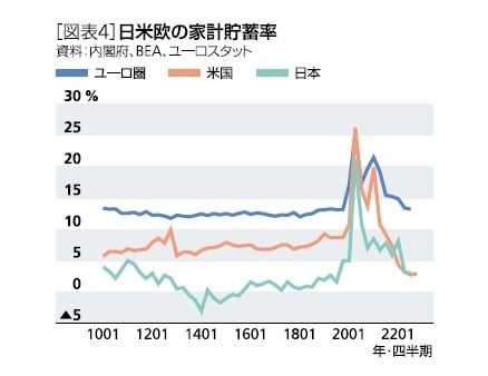 実際、日本よりも個人消費の回復ペースが速い欧米では、日本よりも家計貯蓄率の低下が明確となっており、ユーロ圏はコロナ禍前とほぼ水準、米国はコロナ禍前の水準を大きく下回っている(図表4)。米国はすでにコロナ禍で積み上がってきた貯蓄の取り崩しによって消費の増加を維持する局面となっている。