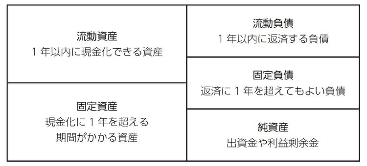 貸借対照表は大きく「5つのボックス」に分かれます。[図表1]を見てください。