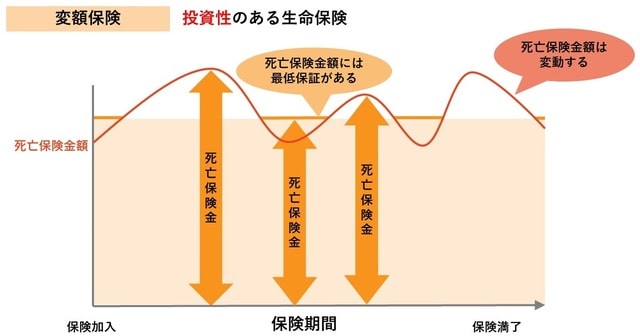資産の運用実績によっては年金原資(受取金額)が払込保険料の総額を上回ることもあれば下回ることもあります。運用実績について契約者が責任を負うことになり、投資性が強い保険と言えます。ただし、死亡給付金については、最低保証が定められています。