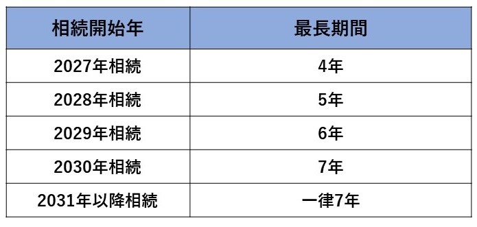 相続開始年が2027年以降から2030年末までは、生前贈与加算の年数が変動するため注意が必要です。