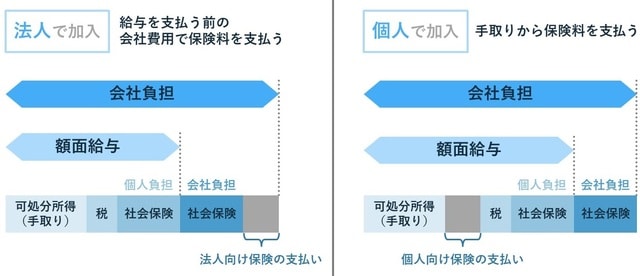 一般的に、経営者には法人契約が好まれます。一番大きな理由は、個人で保険料を支払う必要がないため、保険料を負担している感覚が小さくなるからです。しかも、保険料を会社の経費にすれば、法人税の課税を繰り延べることができ、社会保険料も減額できることから、役員報酬の手取り額を大きくすることが可能です。また、経営者が会社の経費とする場合は、比較的高額な保険料を支払うことを考えるのが一般的です。