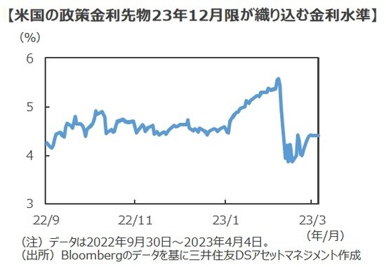 ■欧米ではインフレの高止まりが続く一方、世界的な金融不安もあり、市場の金利見通しは大きく揺れ動いています。足元では、各国金融当局による迅速な対策が奏功して金融不安は後退しつつあるように見えます。しかし、これまでの金融危機では、小さなストレスが徐々に時間をかけて金融システム全体に及ぶパターンが繰り返されてきました。このため、危機の火種が完全に鎮火されたと考える向きは、むしろ少数派かもしれません。