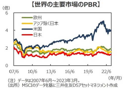 ■現在、日本株のPBRは諸外国との比較で低位にとどまっており、その意味では「経営改善の余地は大きい」といえそうです。このため、PBR1倍割れ企業の必死の経営改革を追い風とした新しい「バリュー株相場」は、息の長い投資テーマとして注目することができそうです。