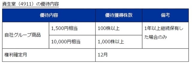 参照元:資生堂公式サイト(https://corp.shiseido.com/jp/ir/investors/preferential.html)