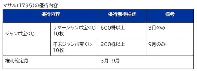 マサルは、ビル修繕やリニューアル、防水工事を中心に事業展開している企業です。株主優待としてサマージャンボ・年末ジャンボ宝くじを株主に提供しています。せっかくなら、意外性や面白みのある株主優待を探したいという方におすすめです。