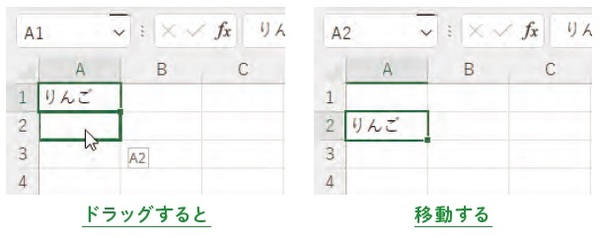 セルを選択して緑枠をドラッグすると、セルの内容が移動します(図表16)。