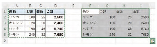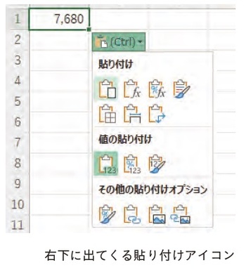 【Ctrl】+【V】で貼り付けた後、右下に貼り付けアイコンが出現し、こちらから選択することもできます(図表2)。