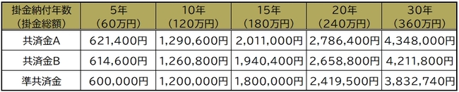 特に「共済金A」「共済金B」は、加入年数が長くなれば、その分だけ共済金の額が掛金よりも増えていきます。
