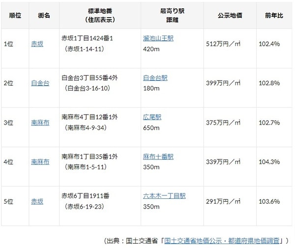 赤坂(Akasaka)・麻布(Azabu)・青山(Aoyama)のいわゆる「3Aエリア」をはじめとして公示地価の㎡単価が100万円を超える街が並び、近年では港南や芝浦など湾岸エリアでの物件供給も活発化しています。価格が低めな湾岸は相対的に家賃が高く、収益率は良好です。また虎ノ門や芝浦、浜松町駅周辺などの開発案件も目白押しです。