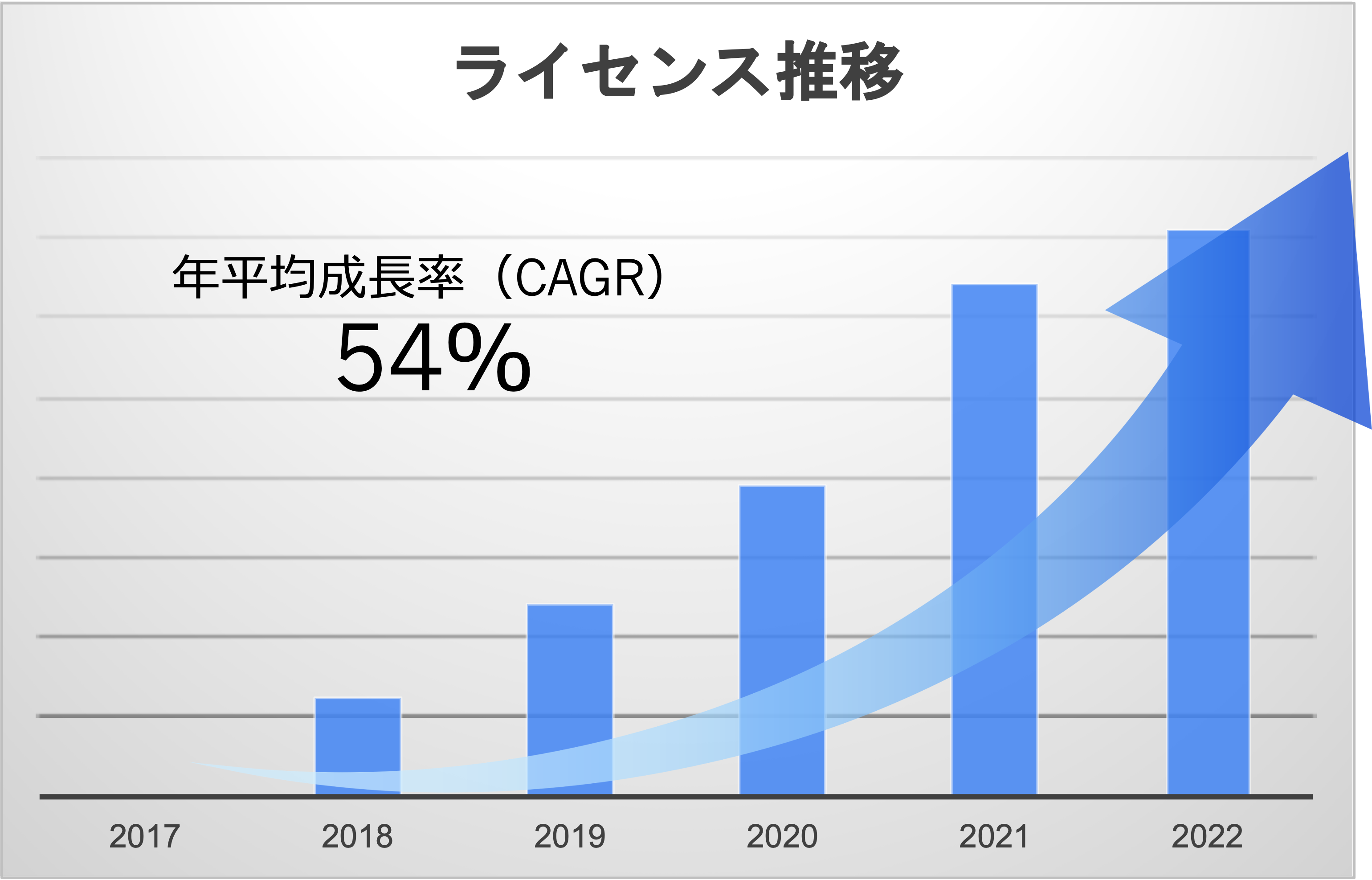 「リリースして5年間の年平均成長率は54%で、毎年1.5倍のペースでスピード成長しています」