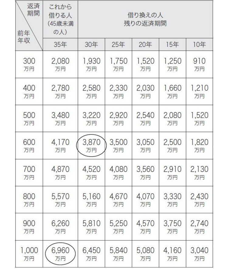 借入可能額の目安は6,960万円となっています。世帯年収1,000万円の共働き夫婦は、住宅購入時には目安として6,960万円の借入が可能ということです。