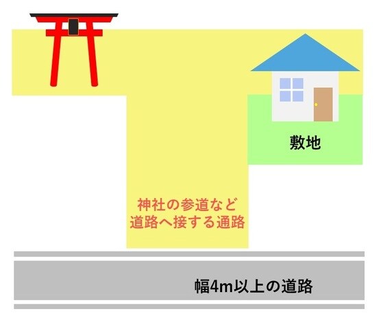 ですが、建築基準法の道路に2m以上接していない場合であっても、その敷地の周囲に広い空き地がある場合、4m以上の農道に接する場合、建築基準法の道路へ通じる通路に接している場合など、安全だと特定行政庁が許可した場合は、建築物を建てることができます。