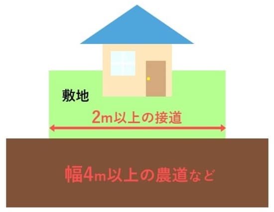(2)接道義務=「建築基準法上の道路に2m以上接していないとダメ!」