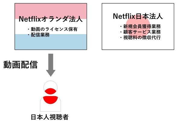 Netflixの場合、米国で製作された動画はもちろん多いですが、韓国で製作された「イカゲーム」だったり、日本で製作された「全裸監督」などもあるわけです。つまり、A国の法人が〇〇業務を行う、B国の法人が〇〇業務を行うというように、峻別されているとは言いにくいように思われます。