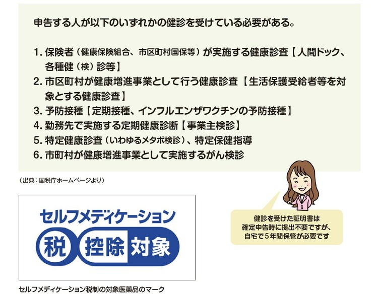 セルフメディケーション税制は、この対象の医薬品の購入金額が年間1万2,000円を超えた場合に確定申告をすると、税金が戻ってくる制度です。なお、レシートや領収書及び対象の健診を受けた証明書は提出は不要ですが、自宅で5年間保存が必要になります。