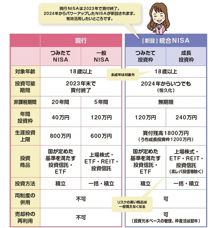 現行NISAから統合NISAへの変更点の一覧は[図表1]の通りです。