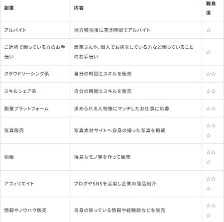 ざっくりこれから紹介する副業の難易度を表にしてみました。筆者も紹介するにあたって、登録が必要なサービスサイトなどはひととおり登録し、担当者と面談を行い、難易度をヒアリングしています。☆の数が多いほど難易度が高くなります。記事では具体的にどういう仕事内容が比較的簡単に稼ぐことができるかも解説しています。