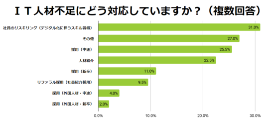 IT人材不足には「リスキリング」や「中途採用」で対応