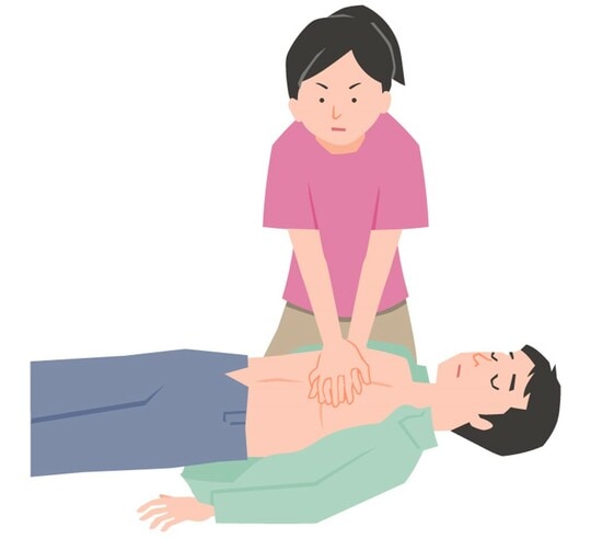 もし1人で緊急の場面に遭遇した場合は、必ず心臓マッサージを優先してください。心臓マッサージの正しいやり方も、念のため、記載しておきます。
