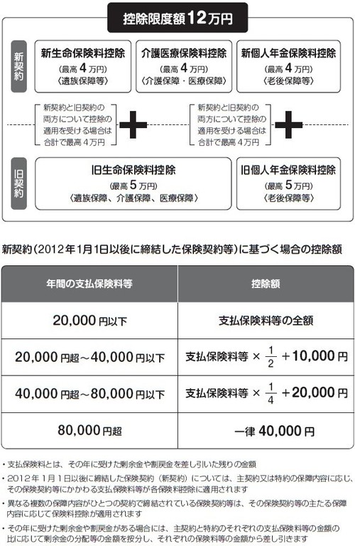 そして、2012年(平成24)以降に契約した人は、介護医療保険料が加わっているため、最高で一般の生命保険料4万円、個人年金保険料4万円、介護医療保険料4万円の合計12万円の控除が受けられます。