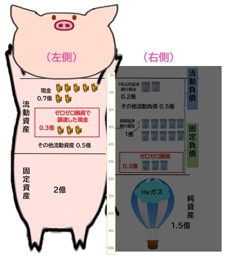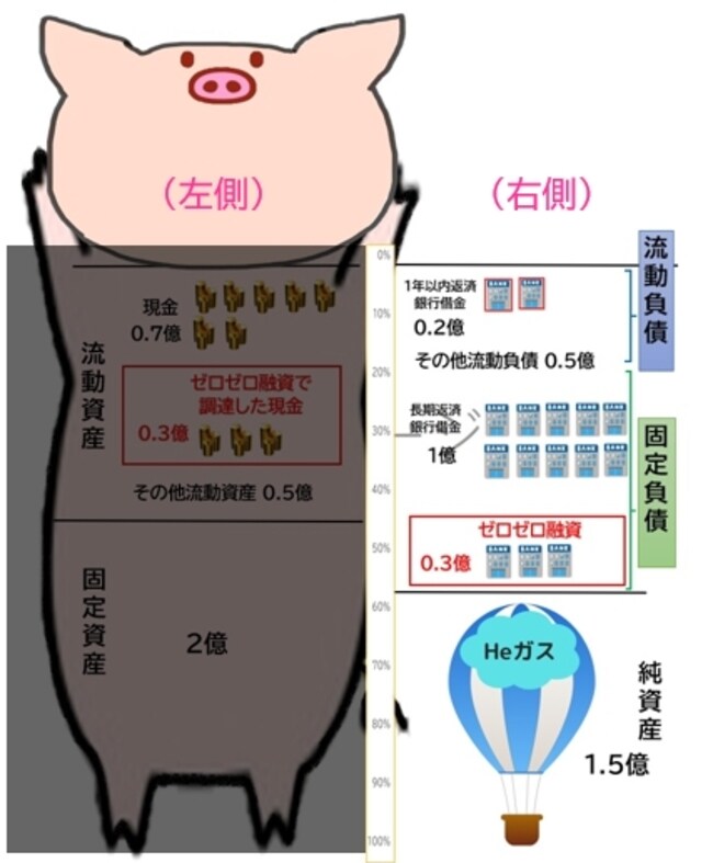 ◆「豚の貯金箱」の右側:「自己資本(純資産)」と「負債」