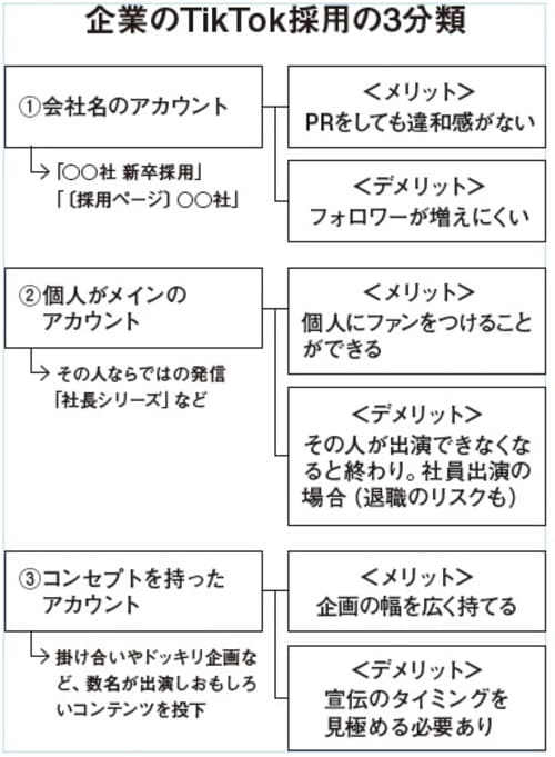 このアカウントのメリットは、通常のTikTokerと同じような投稿が可能であり、個人にファンをつけられることです。「こんな社長のところで働きたい」と思ってもらいやすく、会社のブランディングにもなるでしょう。