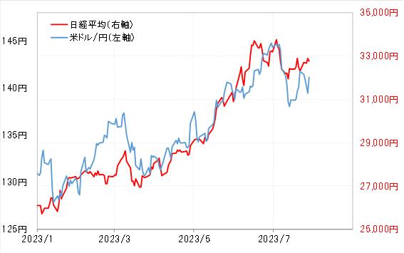 7月の米ドル/円は、年初来の米ドル高値である145円に近い水準でのスタートとなりました。しかし間もなく大きく下落に向かうと、あっと言う間に140円を割り込んで一時は137円割れ寸前まで米ドル安・円高となりました(図表1参照)。