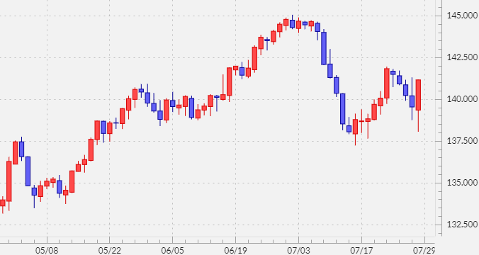 ・7月の米ドル/円は137~144円のレンジで上下に値動きの荒い展開が続きました。