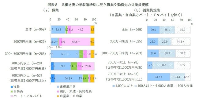 2|本人や配偶者の仕事~大企業勤務の正規雇用者夫婦が半数以上、妻が公務員や役員も1割程度