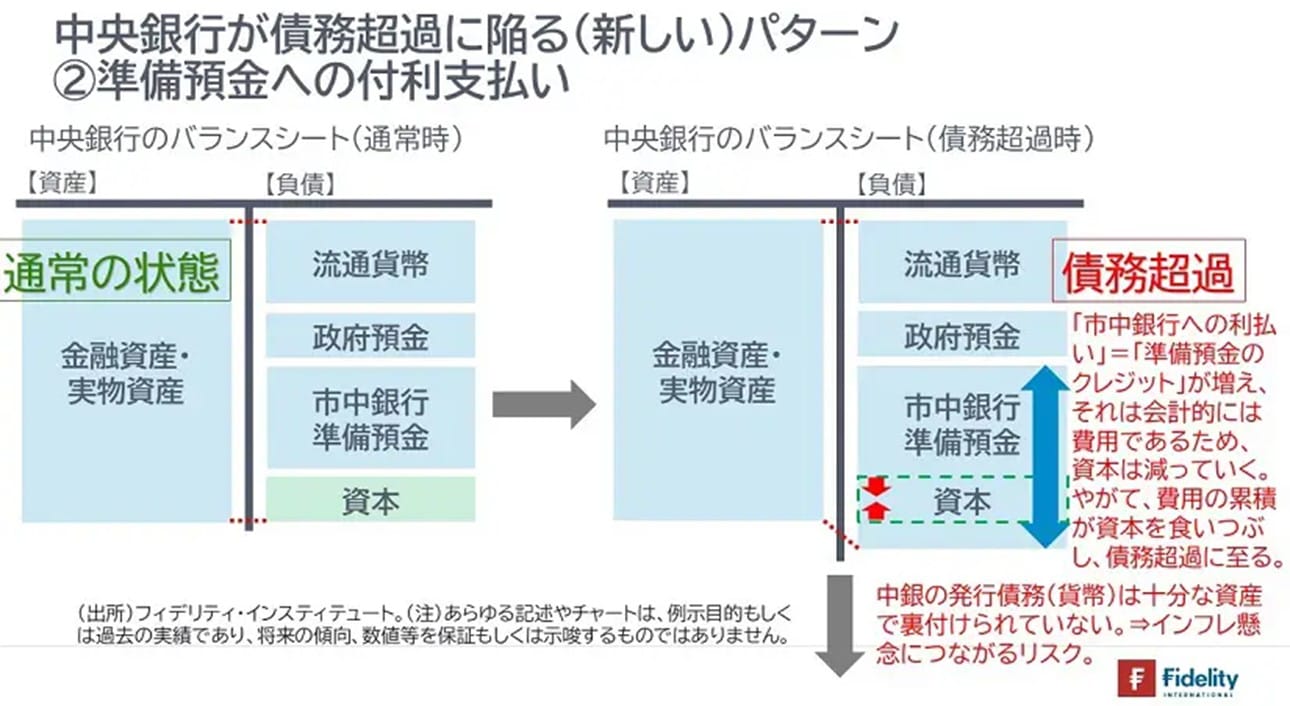 この後者が前者を上回ると、財務省への利益送金は停止され、やがては本節の上部でみたとおり、中央銀行が債務超過に陥ります。