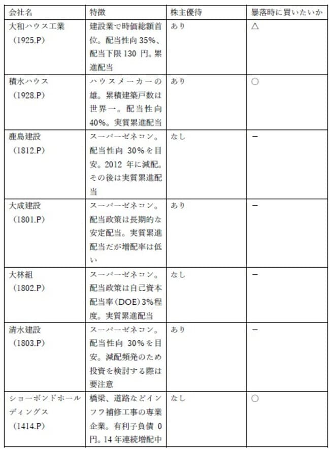 「銘柄分散のために、どうしても投資したい」ということであれば、実質累進配当で財務基盤も相対的に固い大成建設を、株価が暴落して配当利回りが納得できる水準まで上昇した時に投資する、という選択はありでしょう。