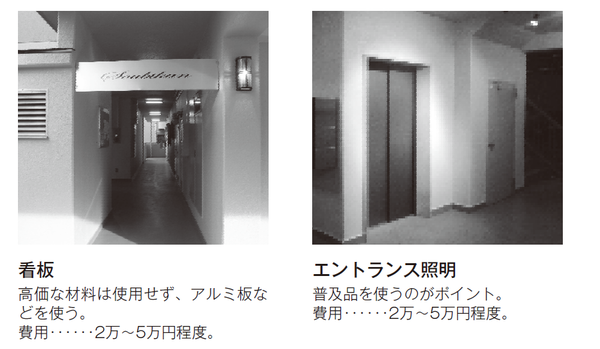 ポイントは、すべて入居案内のときに、入居希望者が特に目にする部分であるということ。ただ、こだわれば室内以上に費用がかかってしまうのが、エントランス・エクステリアの改修工事です。「入り口には石を敷き詰めよう」「オブジェを作ろう」「ゲートを作ろう」「ライトアップをしよう」考え出したらきりがありません。