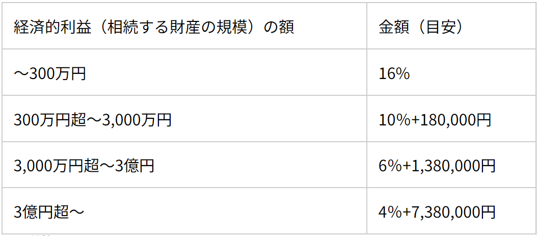 着手金と同様「(旧)弁護士報酬基準」を参考に、報酬金額を設定している事務所も多いです。下表をご覧ください。
