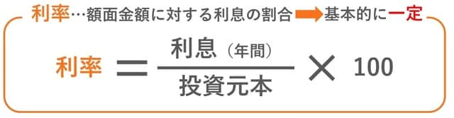 利率とは、元本に対する1年間の利息の割合をいいます。1年間で得られた利息を投資元本で割ることで求められます。