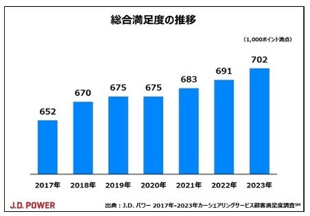 カーシェア市場全体の顧客満足度…過去最高を更新、初の700点台に