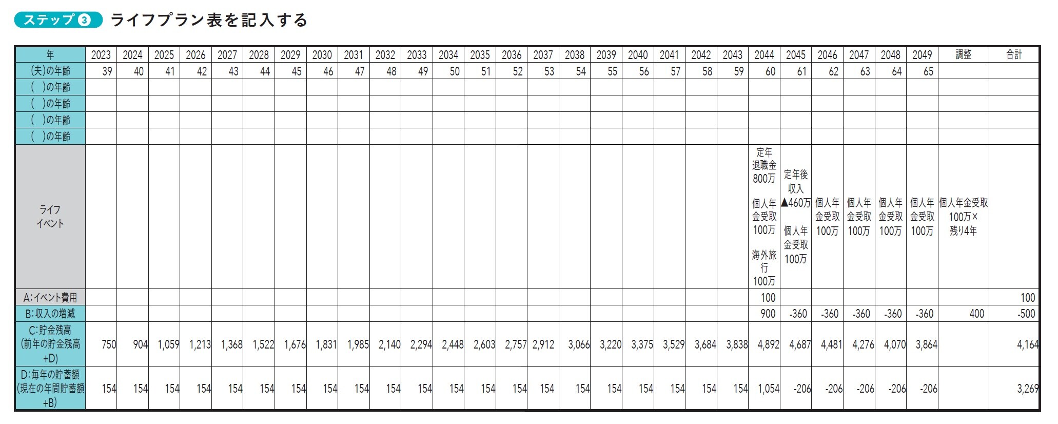 ステップ③ライフプラン表を記入する(図表3。余力があれば定年退職までのライフプランを作り、老後のシミュレーションを行う⇒図表5)