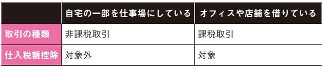 自宅の一部を仕事場にしている場合、オフィスや店舗を借りている場合で、取引の種類や仕入税額控除が変わる点に注意!