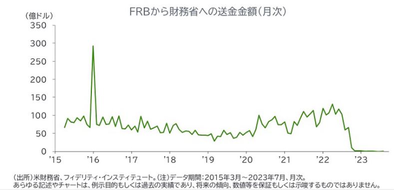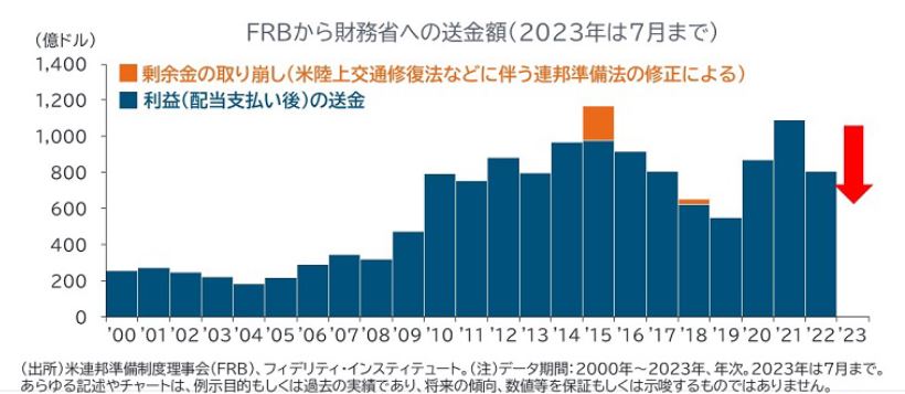 バイデン政権の財政政策に加えて、財政赤字の拡大に貢献していると考えられるのが、米連邦準備制度理事会(FRB)から財務省への送金金額の減少です。