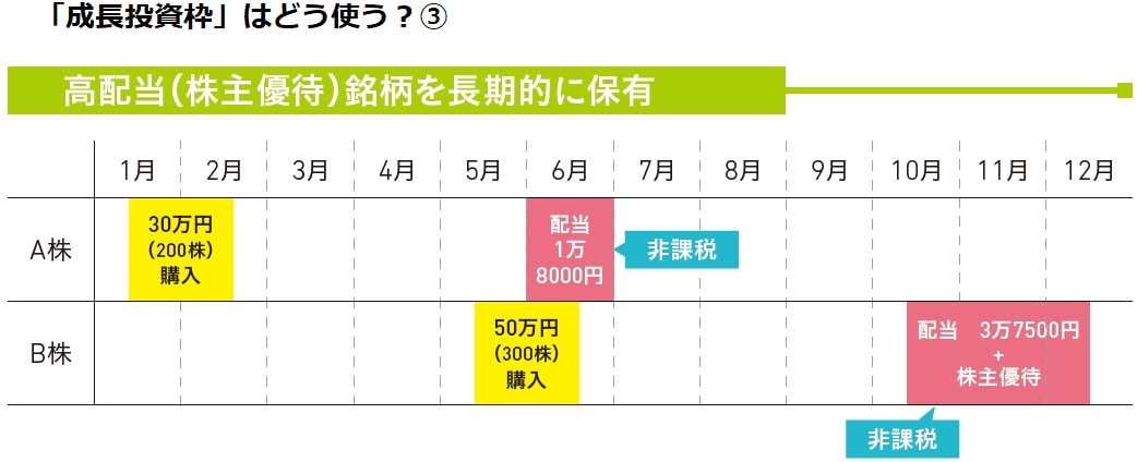 フジコ先生:最後に、株式を購入する際のポイントをお知らせしますね。図表6のように、成長投資枠では、「高配当銘柄」を狙うのもおすすめです。