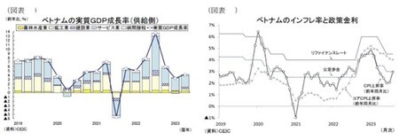 一方、サービス業(同+6.1%)は堅調な伸びを維持して製造業の落ち込みを補った。外国人観光客数の増加による観光関連産業の回復やインフレ鈍化に伴う家計の実質購買力の向上を受けて、文化スポーツ(同+11.4%)や卸売・小売業(同+9.0%)、宿泊・飲食業(同+7.7%)、運輸・倉庫業(同+7.7%)が好調だった。また建設業(同+7.1%)はベトナム政府が執行の遅れていた公共投資予算(2023年:前年比+23%増)を加速させて回復した。