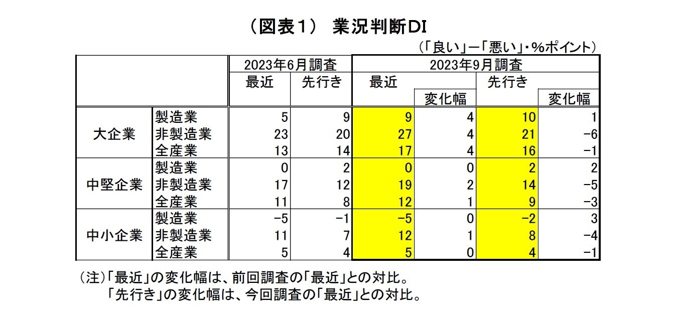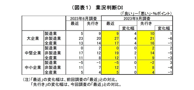 2.業況判断DI:大企業製造業・非製造業ともに改善も、先行きは慎重