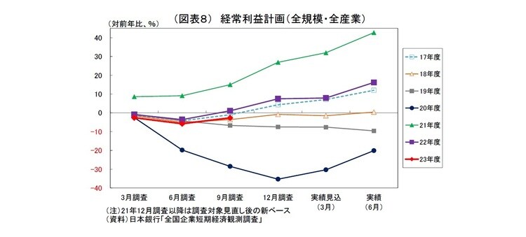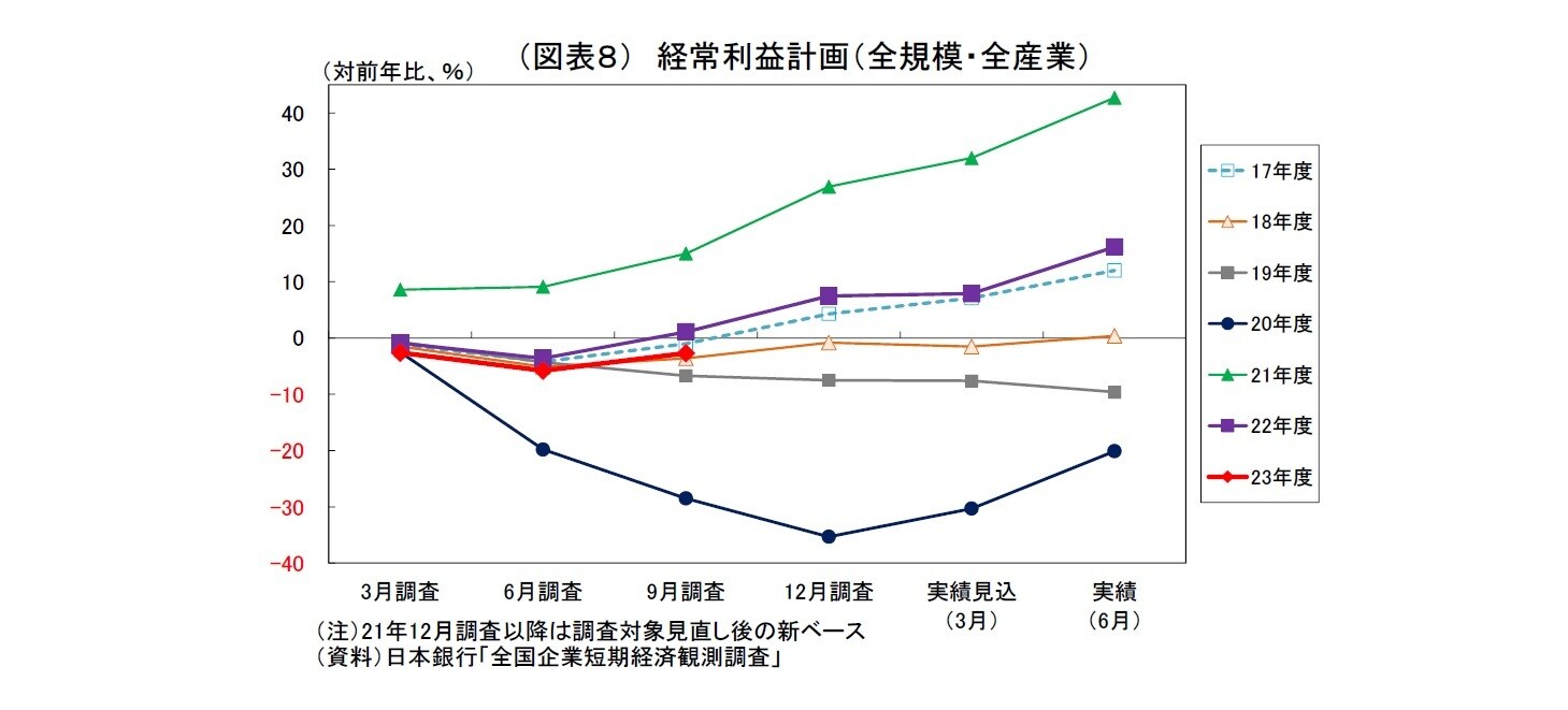ただし、海外経済の減速や原燃料価格の再上昇、物価上昇による消費の圧迫といった下振れリスクが残るため、引き続き慎重な減益見通しのまま様子見している企業も多いと推測される。