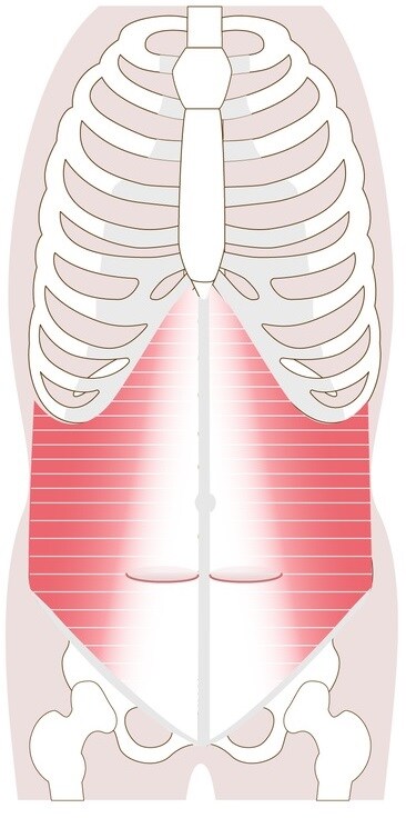 最も重要と考えられているローカル筋が「腹横筋」というもので、この筋肉は別名「コルセット筋」と呼ばれています。その名の通り、コルセットのように体幹をぐるりと一周巻き、覆っているようなインナーマッスルです。