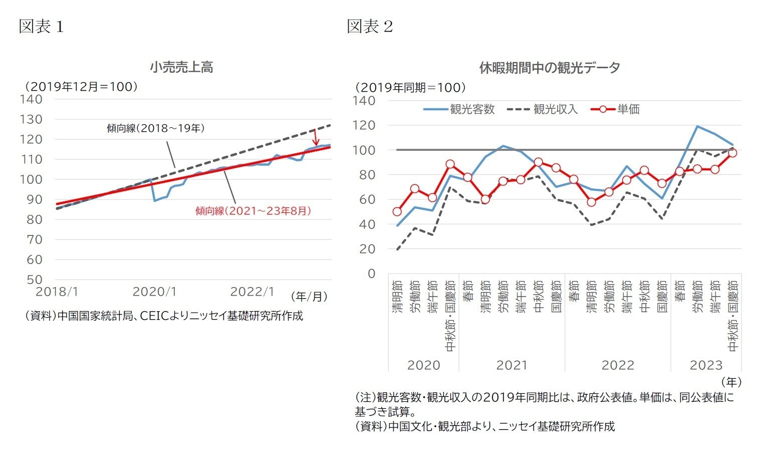 ただ、低迷が続く不動産市場や、現在の政府の景気対策の効果など、先行きの不確実性は依然高い。今後、観光消費と同様、消費全般が勢いを取り戻して内需回復のペースが上向き始めるのか、それとも倹約ムードが根強く残るのか、今しばらく観察を続ける必要がありそうだ。