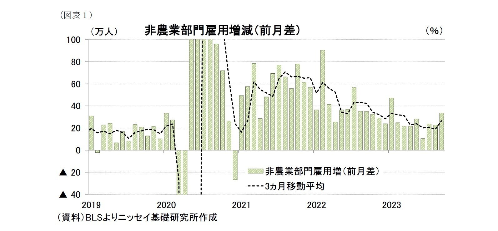 1. 米国の労働市場はFRBによる大幅な金融引締めもあって減速傾向が続いていたが、足元で非農業部門雇用者数や求人数の伸びが加速したほか、失業保険申請件数が減少するなど予想外に再加速を示している。