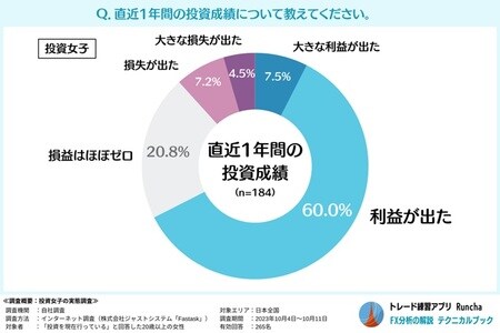 次のグラフは、2023年10月に独自に実施した、投資女子の直近1年間の投資成績の調査結果です。