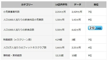 1㎢当たりの医療施設数と人口1000人当たりの医療施設数、人口1000人当たりの医師数ともに上位にランクインしており、医療体制は充実しているといえるでしょう。区が医療に関する電話相談窓口を設置しており、自宅から近い医療機関の紹介や治療内容に関する質問対応をしてくれるので便利です。